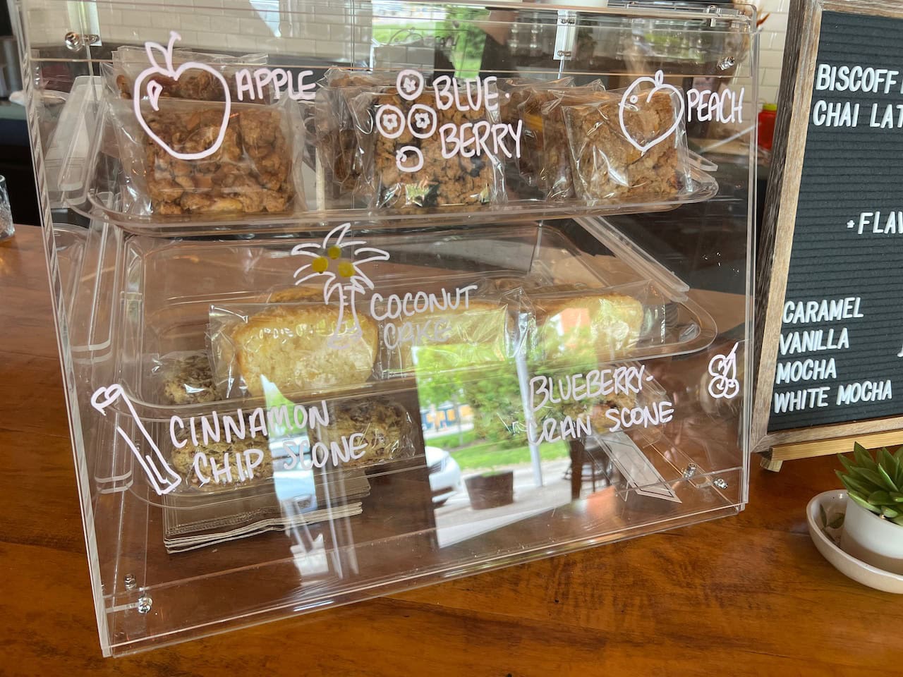 Plus, they feature a half dozen locally made scones and crumble bars.