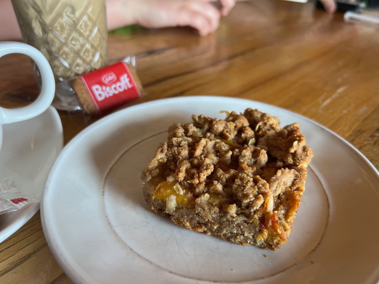 Here’s the peach crumble bar!